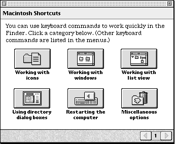 The Simple Access window for Macintosh Shortcuts, shown in Figure 2-15, uses three-dimensional buttons. The user selects any of these to access a help topic.