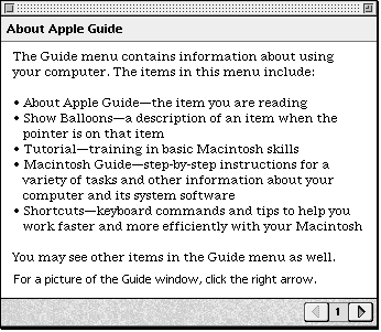 In contrast, the Simple Access window for About Apple Guide, shown in Figure 2-16, presents the user directly with help information.