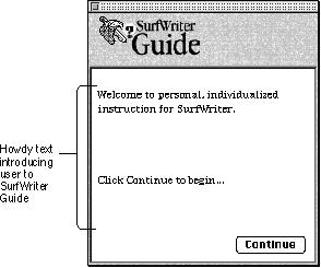 Figure 2-17 shows howdy text that appears in the Full Access window of SurfWriter Guide.