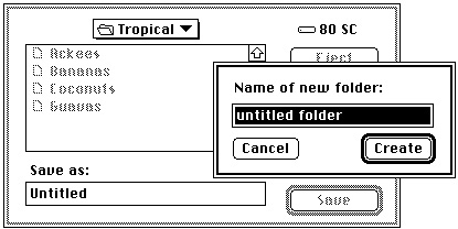 If the user clicks the New Folder button, the Standard File Package presents a subsidiary dialog box like the one shown in Figure 1-9.