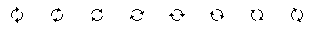 The asynchronous arrows control (also known as "chasing arrows") is a simple animation used to indicate that an asynchronous background process is occurring; in other words, a process which does not display a dialog box that might contain a progress indicator. For example, the Finder displays asynchronous arrows in the header while it is updating the window. Figure 2-46 shows asynchronous arrows in their various states.Various states of asynchronous arrows
