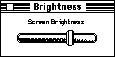 You can design and implement your own sliders as necessary for your application. When you design your sliders, be sure to include meaningful labels that indicate to users the range and direction of the slider. For instance, the Speaker Volume slider in the Sound control panel has numbers from 0 to 7 to indicate the loudness of the sound. It would be much clearer to users if the slider also had labels that stated the loudness in relative terms. The bottom could be labeled Flash Menu Bar. This type of labeling substantially improves the comprehensibility of the graphical interface. Give users clues about the direction in which the indicator moves and how that relates to the control. For instance, most people assume that moving an indicator up a vertical slider means increasing the value of the setting. However, this assumption could be clarified easily with graphics or words. Figure 7-14 shows an example of a slider with graphical symbols that demonstrate to users which direction to move the indicator to increase or decrease brightness on a monitor. Figure 7-14 A slider with direction information