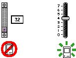 Make sure that you don't use a scroll bar when you really mean to use a slider. Use scroll bars only for representing the relative position of the visible portion of a document and in scrolling lists. Typically a scroll bar represents the amount of data in a document, and the scroll box represents the relative position of the window over the length of the document. Using a scroll box to change a setting confuses the meaning of the element and makes the interface inconsistent. Scroll bars are described in detail in the section "Scroll Bars," which begins on page 151 in Chapter 5, "Windows." Figure 7-15 shows a scroll bar used incorrectly and a slider used correctly in a similar situation. Figure 7-15 Incorrect use of a scroll bar and correct use of a slider