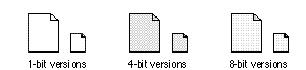 Document IconsDocuments are the files in which users store the content they create inan application. The document icon uses the outline of a page with a turned-down upper-right corner. This shape evokes the concept that a document is like a piece of paper, a typical storage medium for information in an office. Figure 8-33 shows the default document icons that appear in the Finder if you don't supply a custom icon for your documents. Figure 8-33 Default document icons