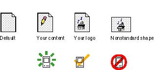 As with the application icon, it's OK to use your company identification in a document icon. Be sure not to change the shape of the document icon unless the document that your application creates is fundamentally different from most documents. One example of a document that is fundamentally different is a stack. The stack icon is a metaphor that represents a stack of cards, Figure 8-35 shows some examples of custom document icons that show the range of acceptable and unacceptable customizations. Figure 8-35 Acceptable and unacceptable custom document icons