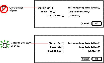 When the alignment of items is reversed, it's important that the elements appear vertically aligned. Therefore, when you create dialog box items, Figure 2-3 Dialog boxes with display rectangles that are different sizes and the same size