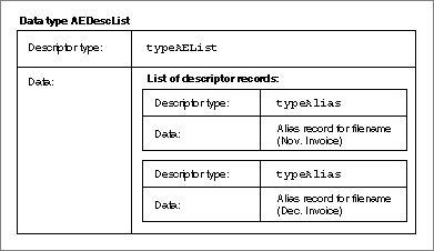 typeAERecordand can be coerced to several other descriptor types. An Apple event record, which is different from an AE record, is another special descriptor list of data typeAppleEventand descriptor typetypeAppleEvent.