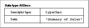 typeChar, which specifies that the data handle refers to an unterminated string (in this case, the text "Summary of Sales").Figure 3-5 A descriptor record whose data handle refers to an unterminated string