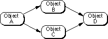 TStandardDependencySpacealgorithm has two phases, as can be seen by examining theTStandardDependencySpaceimplementation ofNotifierChanged. The first phase recursively marks both direct and indirect dependents of the changed object as needing updating. In our example, objects B, C, and D would all be marked when A changes. In the second phase, each object with notifiers is examined. If an object is marked as needing updating, itsDoUpdatemethod will be called after the algorithm has ensured that theDoUpdatemethod of all notifiers has been called. Once an object is updated it is unmarked, so thatDoUpdateis never called more than once for each object.This algorithm may add unnecessary overhead if your dependency space is a simple one with few multiple paths and no danger of cycles. However, it can be more efficient for complicated dependency spaces with many multiple paths.