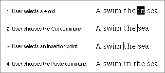 Figure 2-5 shows the results of applying the same operations in an application that doesn't support intelligent cut and paste.