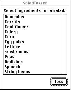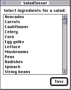 If a list includes a scroll bar but there are a small enough number of items in the list that all the list's items are visible, the List Manager automatically disables the scroll bar. For example, Figure 4-3 shows such a list.