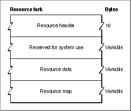 You need to know the exact format of a resource fork, which is described in this section, only if you're writing an application that creates or modifies a resource fork directly, without using Resource Manager routines.Figure 1-11 shows the format of a compiled resource fork.