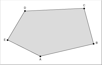 Note that the cross product of the vectors formed by the first two edges (that is, by the segments from A to B and from B to C) points straight out of the page, indicating that this is the front side of the polygon.