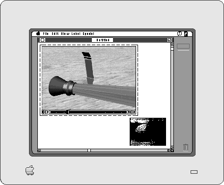 Resizing the movie's rectangle is the same as resizing PICT rectangles within a text or paint document. When the user selects the movie, a selection rectangle appears with resizing handles at the corners of the rectangle, like those shown in Figure 1-3. The user can drag the handles to resize the movie rectangle.