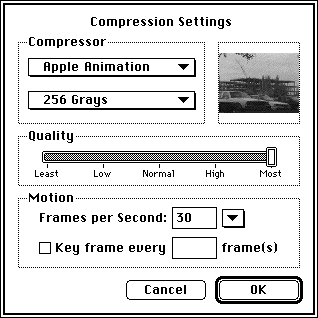Figure 1-7 shows a dialog box that this application provides to allow the user to select compression methods for video using the standard image-compression dialog component.