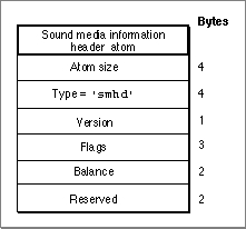 The sound media information header atom (shown in Figure 4-20) stores the sound media information.Figure 4-20 The layout of a sound media information header atom
