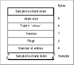 'stsc'atom type).- Version. A 1-byte specification of the version of this sample-to-chunk atom.