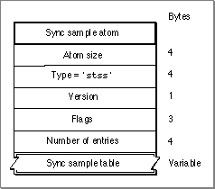 - Sync sample. The sync sample atom, described in "Sync Sample Atoms," which begins on page 4-25.