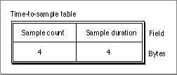 - Time-to-sample table. The time-to-sample atom contains a table that defines the duration of each sample in the media. Each table entry contains a count field and