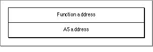 Note that the function offset in the unflattened transition vector is a word offset, and the A5 offset is a byte offset. In a flattened transition vector, MakeFlat has converted the function's word offset into a byte offset.