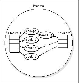 Connections may be shared among closures within a process if your application calls the Code Fragment Manager to prepare a plug-in. Figure 1-2 shows the closure of an application and a closure of a plug-in sharing a fragment within a process.
