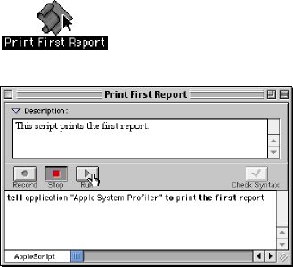 Anyone who uses a Macintosh computer can run scripts. When you run a script, it performs the operations specified by its statements. Figure 2-2 illustrates two ways to run a script: by double-clicking a script application's icon on the desktop, or by clicking the Run button in the Script Editor window.