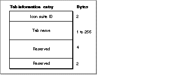 tab information resource to specify the icon suite ID and name of each tab in a tab control. A tab information resource is a resource of type 'tab#'