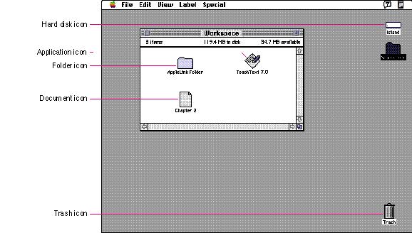 Icons are graphic representations of objects such as documents, storage media, folders, applications, and the Trash. Icons look like their real-world counterparts whenever possible. People can select, open, move, copy, and throw away icons. Figure 8-1 shows some icons displayed in the Finder.