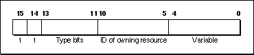 Bits 14 and 15 are always 1. Bits 11 through 13 specify the type of the owning resource, as follows: