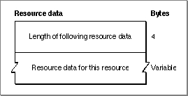 The resource data in a resource fork consists of the data in its individual resources. Figure 1-13 shows the format of resource data for a single resource.