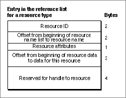 Figure 1-18 Offsets in a resource fork and an entry for a single resource in a reference list