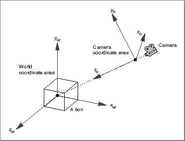 world transform can be represented by the identity matrix, in which case the local coordinate system of that object and the world coordinate system coincide. If one or more transforms is applied to the object at rendering time, the world space location of the object is determined by taking its local space position and applying the transforms to it.A world coordinate system defines the relative positions and sizes of geometric objects. When an object is rendered in a view, the view's camera specifies yet another coordinate system, the camera coordinate system (or camera space). A camera coordinate system is defined by the camera placement structure associated with the camera, which is defined like this: