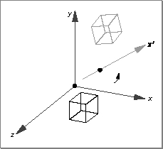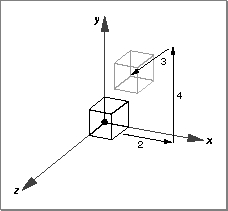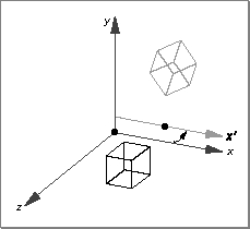 TQ3Vector3D myVector; TQ3TransformObject myTransform; Q3Vector3D_Set(&myVector, 2.0, 4.0, 3.0); myTransform = Q3TranslateTransform_New(&myVector);Figure 7-6 shows a unit cube before and after a translate transform is applied.Figure 7-6 A translate transform