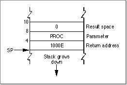 myResCount = CountResources('PROC');Suppose further thatCountResourceshas been ported to the PowerPC instruction set. When your application callsCountResources, the stack looks like the one shown in Figure 6-2.Figure 6-2 The stack before a mode switch
